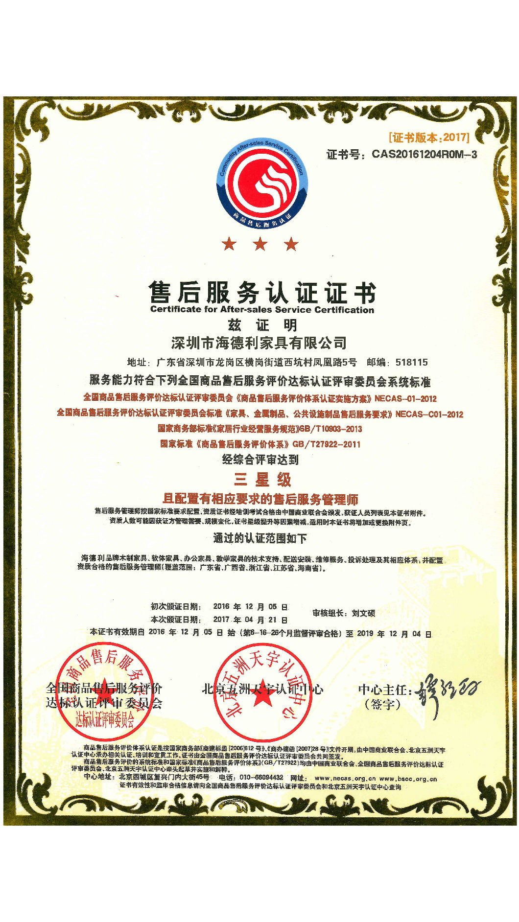 送貨安裝后您將獲得餐廳家具工廠海德利家具為期五年的服務保障。